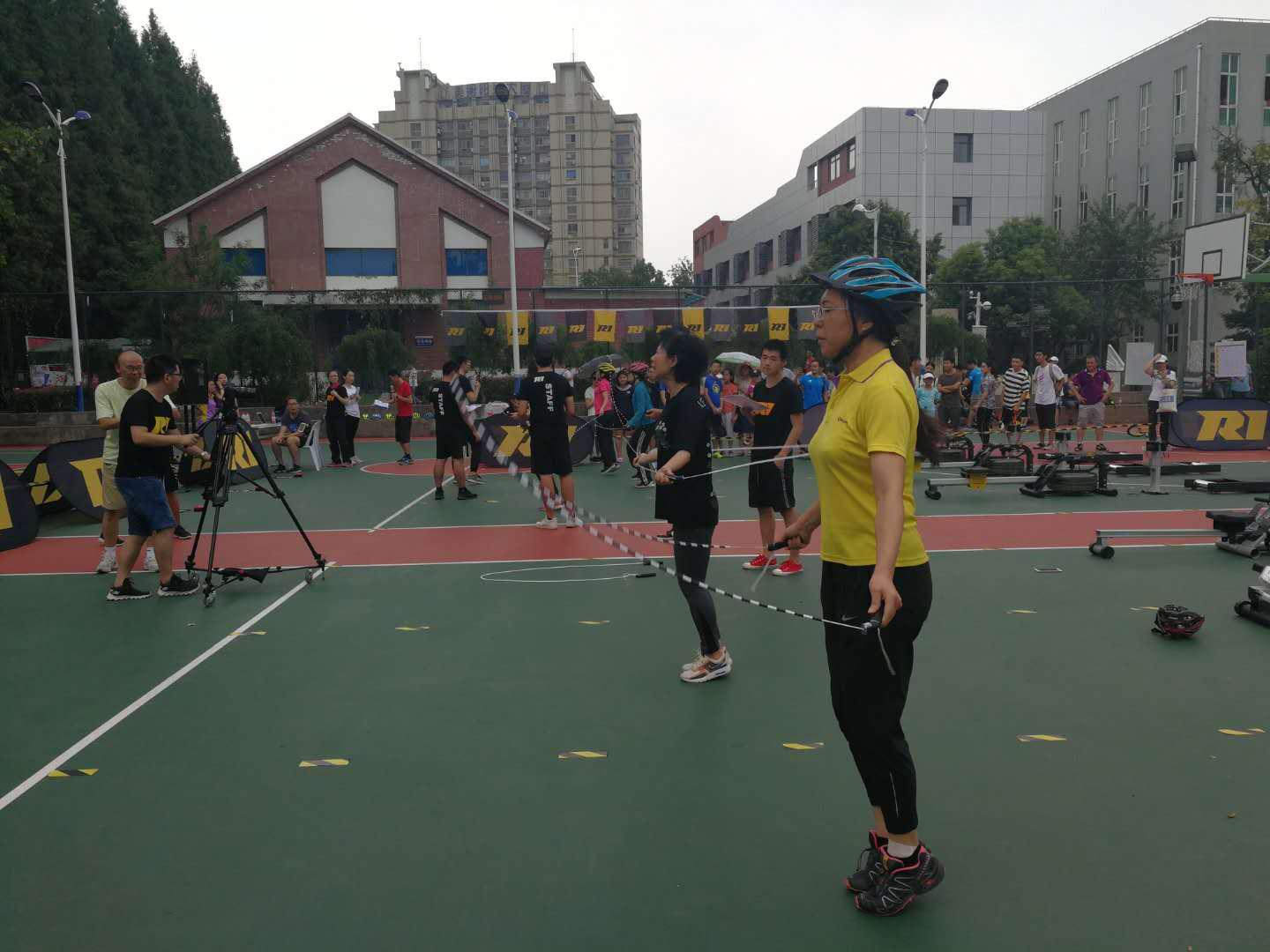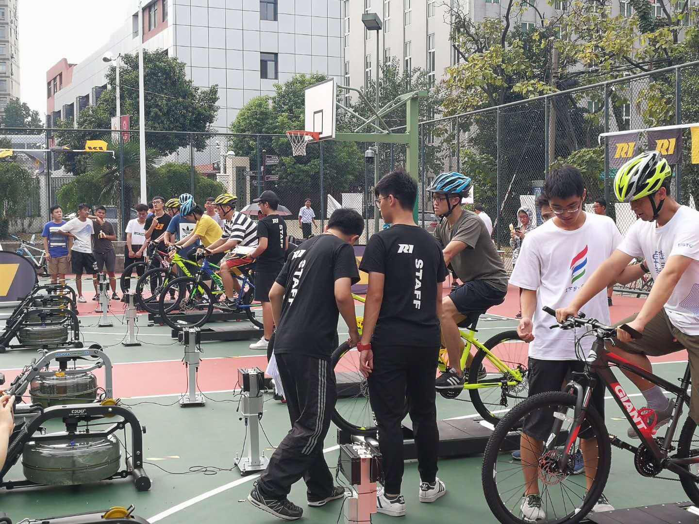 为增加竞赛的趣味性并考验参赛选手的综合运动能力,本次比赛在自行车滚筒骑行台项目的基础上增加了划船机与跳绳两个项目,让大家在校园内有限的场地中体验老牌竞技“三项”运动的强度和魅力。“三项”运动考验的不仅仅是选手的全面身体素质,也是心理和意志的大考验,拼的是高强度运动带来疲劳状态下的坚持。比赛项目的第一环节是自行车滚筒骑行台竞速赛,该项目主要考验的是选手腿部肌肉的力量和速度,考验着平衡力以及心肺功能;而划船机赛,是在选手经过滚筒骑行台2公里高强度骑行后,考验着肢体的柔韧性和耐受力;第三项为跳绳赛,选手经历前两项竞技之后,增加了选手灵敏、协调能力的比拼,同时在极度疲劳的状态下考验着他们的意志力。