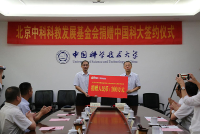 为庆祝中国科大六十周年校庆,支持中国科大教育事业发展,北京中科科教发展基金会向中国科大捐赠一百万元,用于支持学校提升科教服务能力建设。