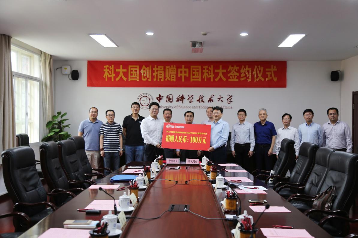 为支持中国科大科教事业、支持六十周年校庆活动,科大国创软件股份有限公司向我校捐赠一百万元。董永东董事长在致辞中祝贺中国科大六十华诞,表达了对母校的感激之情。他说,科大国创是从中国科大走出来的企业,在成立和发展的过程中得到母校非常多的帮助,能够在六十周年校庆之际捐赠母校是每个科大人的荣幸,未来科大国创将一如既往地支持中国科大的发展。