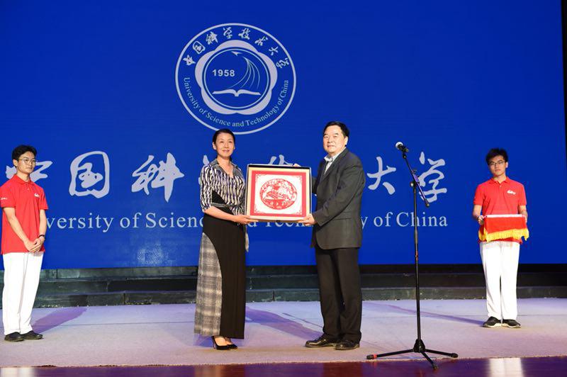演出前,包信和校长与韩再芬院长互赠纪念品,表达谢意和祝福。