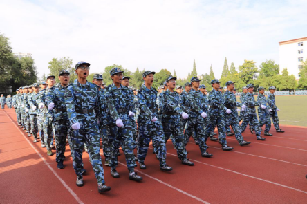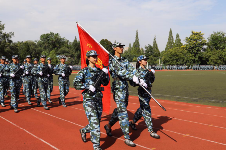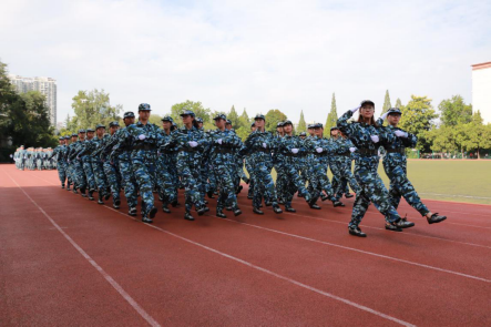 标兵就位后,分列式正式开始。接受检阅的同学们展现出过硬的军事素养、优秀的作训技能与干练的军人作风。