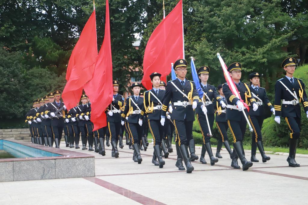 9月3日清晨,我校师生在东区郭沫若广场及西区北门升旗点举行升旗仪式,隆重纪念中华人民抗日战争暨世界反法西斯战争胜利73周年。党委人民武装部副部长、学生工作处副处长、军训团团长聂磊,党委学生工作部副部长、学生工作处副处长、军训团副政委赵钢,校团委副书记、军训团副政委赵林,以及2018级新生共计千人参加升旗仪式。