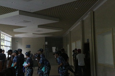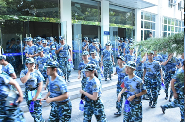 全体人员从礼堂疏散完毕仅用时1分50秒。自开始疏散到所有人员全部安全到达集结地点并清点完毕,用时为5分03秒。人员疏散至相应的集结地点后,各营连排承训教官清点人数,并根据流程逐级上报至军训团政委、校团委书记杨晓果。随后,杨晓果对此次演习活动进行了简要总结点评。