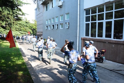 东区大礼堂是我校师生参与大型学术会议和学生活动的重要场所,在此开展应急疏散演习,可以让新生掌握大礼堂应急疏散路线。消防安全知识讲座和应急疏散演习是我校新生军训期间的“必修课”,由军训团、学工部(处)、人武部、保卫与校园管理处、校团委、校医院等单位联合主办,校芳草社青年志愿者协会承办。