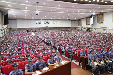 军训团团长、校人武部副部长聂磊主持消防安全知识讲座,讲座由蜀山区消防大队刘云安警官主讲。刘警官围绕“全民关注消防生命安全至上”的主题,从“检查消除火灾隐患能力”、“组织扑救初起火灾能力”、“组织人员疏散逃生能力”以及“消防宣传教育培训能力”四个能力建设,结合校园火灾案例,讲解了全面实用的校园消防安全知识,深受同学们欢迎。