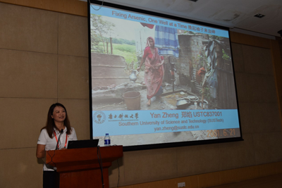 郑焰教授的报告从四个方面进行了阐述:砷化合物的危害性、地下水中的砷化合物、人们对砷治理的态度和砷化合物的处理方法。郑焰教授解释说,砷化合物均有毒性,当人摄入砷的剂量超过一定范围,人的皮肤系统、消化系统、肝脏胃以及神经系统都会受到损害。但是砷却广泛分布于自然界中,目前基于对砷含量分布的简单估计,沉积物中砷含量可达1mg/kg,若将沉积物分为三段,与地下水源临近的沉积物上层砷含量为4.8mg/kg,沉积物下层砷含量只有0.2mg/kg,沉积物与地下水之间会存在砷的交换过程。地下水是人类广泛使用的资源(如饮水和灌溉),若使用水中砷含量超标,势必会对人类健康产生影响。通过对全孟加拉国各个井水分布点中砷含量的测定,郑焰教授等研究人员估计,孟加拉国每年因地下水中砷含量超标而死亡的人数可达4万多人。USGS研究同样对美国私人用井的砷含量进行了测定,调查结果发现,全美约有210万的私人用井其水中砷含量超过了10ug/ml(美国井水砷含量的限制标准),郑焰教授及其同事回访了部分砷含量超标井水用户,约有15.5%的人在已知井水砷含量超标后不安装砷过滤装置。郑焰教授认为,人类对于危险总是抱有乐观态度,总是更倾向于危险不会发生在自己身上。郑焰教授对砷治理工作也作了相关阐述,纳米磁铁矿可进入矿物内部,通过表面沉淀以及表面吸附作用与砷形成多齿多核内层络合结构,场地原位试验测试表明该技术对地下水中的砷有不错的去除效果。