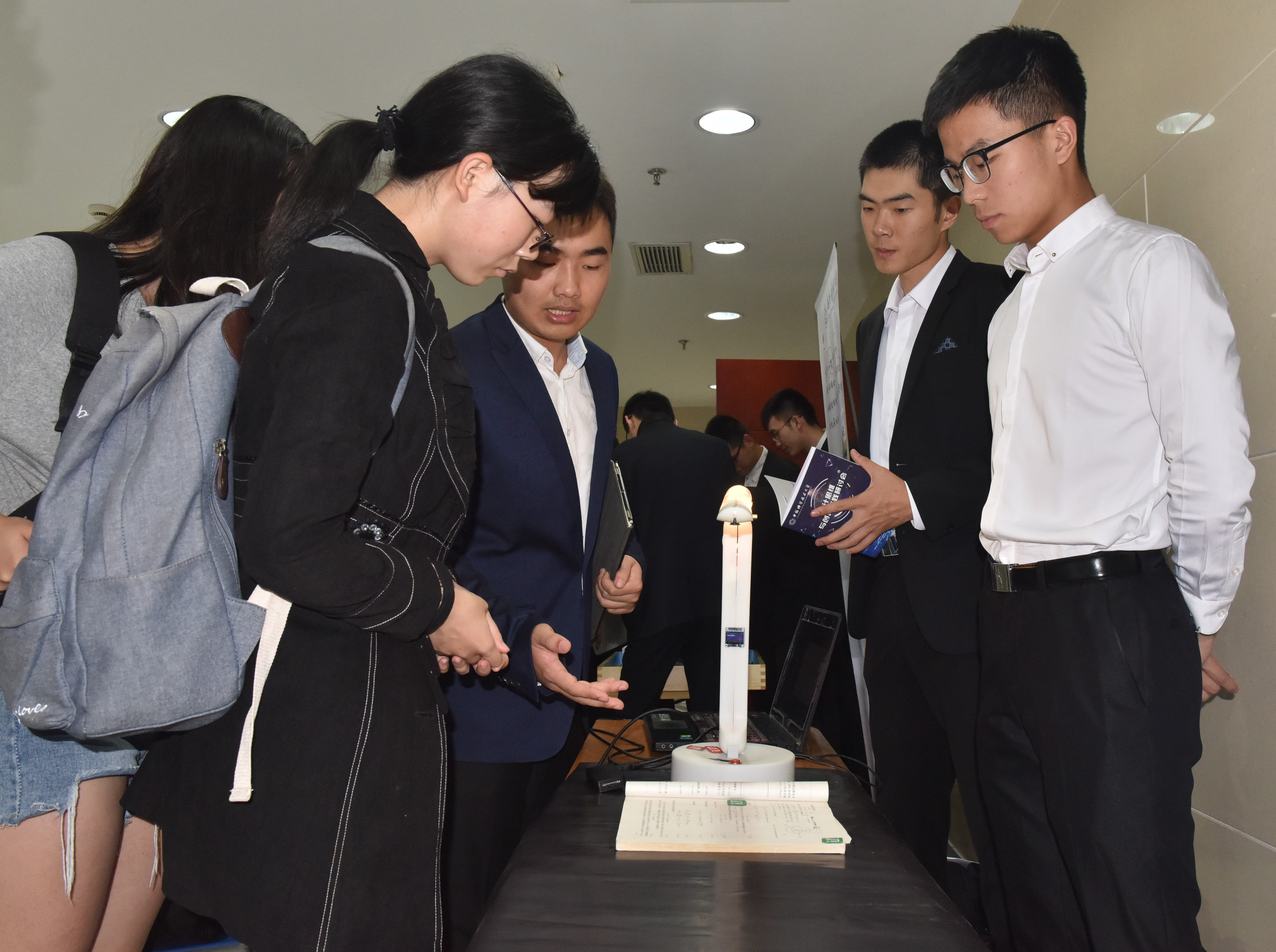 汇报会首先由7支来自中国科学技术大学、安徽大学、合肥工业大学和旧金山州立大学学生共同组成的学生团队展示他们的设计成果。在中场休息和会后展示阶段,同学们还进行了实物演示,与会嘉宾纷纷现场体验各组的作品,每一个展位面前人头攒动,场面热烈,同学们一学期的努力得到了大家的认可。