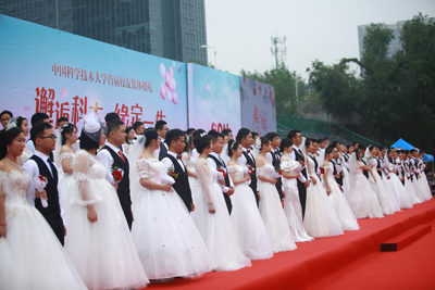 5月20日上午,主题为“邂逅科大·缘定一生”的中国科大首届校友集体婚礼在中国科大东校区操场举行。校党委副书记蒋一、校友总会副会长鹿明参加活动并致辞。