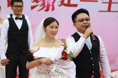 2007级校友吴茂乾代表新人发表真挚感言,感恩科大,感谢妻子,在科大相遇是他们最幸运的事,可爱的小宝宝是他们幸福生活的最好诠释。
