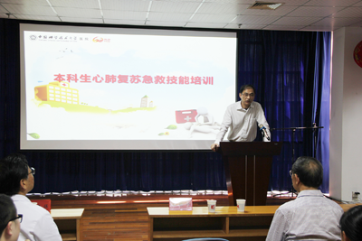 本次培训班由校学工部(处)、校团委、校医院联合举办,目的是为了丰富我校学生的课余生活,拓展同学们的课外知识面,掌握心肺复苏急救知识和技能,在日常学习生活中遇到险情时,能够做到基本的自救或对他人的救助。本次培训班计划开展六期培训任务,5-6月份每周三下午开展培训,培训对象为我校本科生安全和心理委员,教学内容为心肺复苏(CPR)技能操作和体外自动除颤仪(AED)使用。