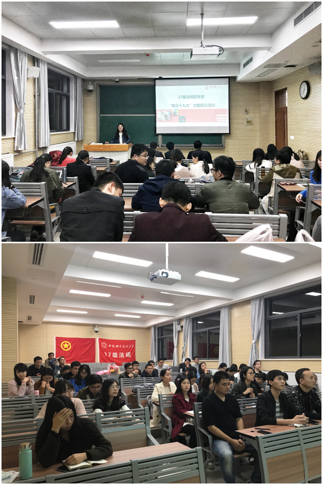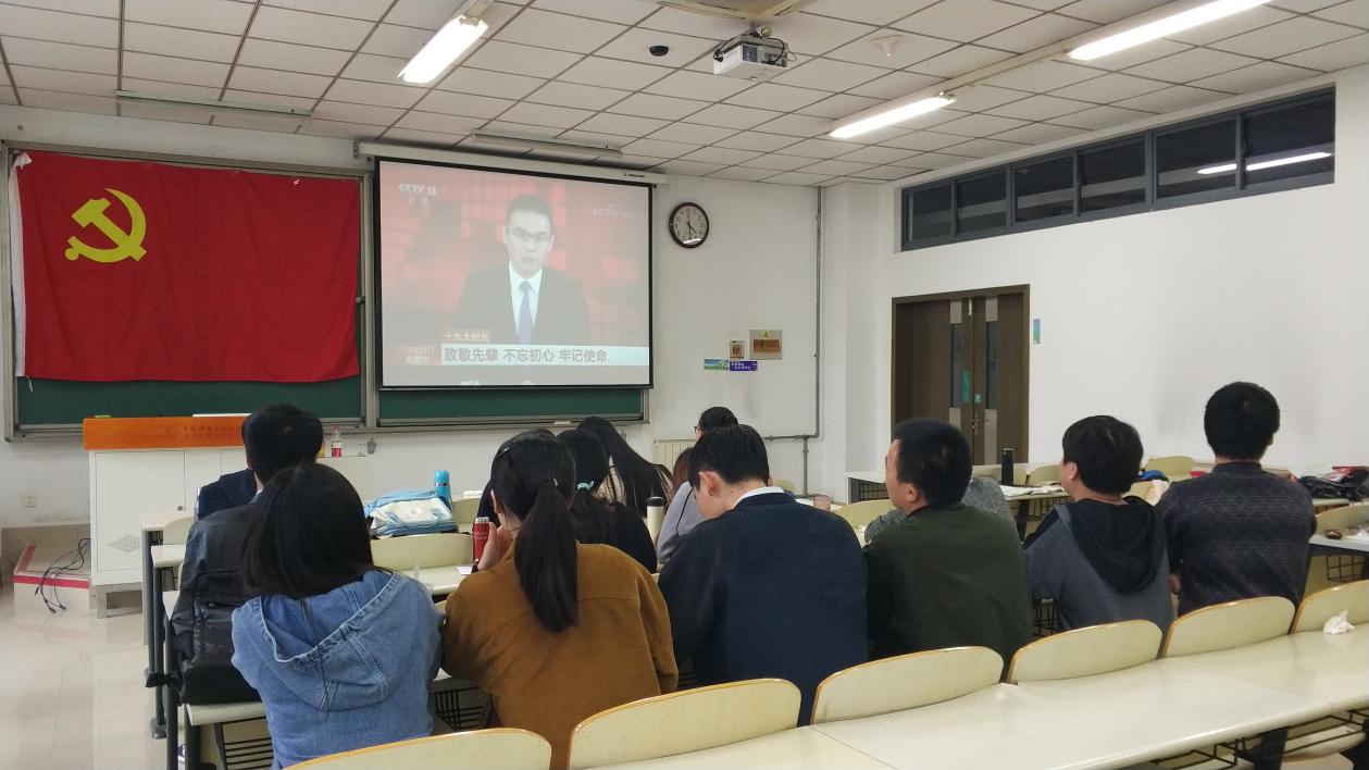 公共事务学院研究生第二党支部和2016法硕团支部开展了“致敬先辈 不忘初心 勇担使命”主题党团日活动,集体观看 “十九大时光”系列内容。习近平总书记的报告坚定了“高举中国特色社会主义伟大旗帜,决胜全面建成小康社会,夺取新时代中国特色社会主义伟大胜利,为实现中华民族伟大复兴的中国梦不懈努力”的决心;“新时代新征程 百姓盛赞十九大”展示了全民在党的带领下团结一致的盛况;“代表热议建设世界一流军队”彰显了我国的国际地位;“致敬先辈 不忘初心 牢记使命”片段尤其使同学们备受鼓舞。