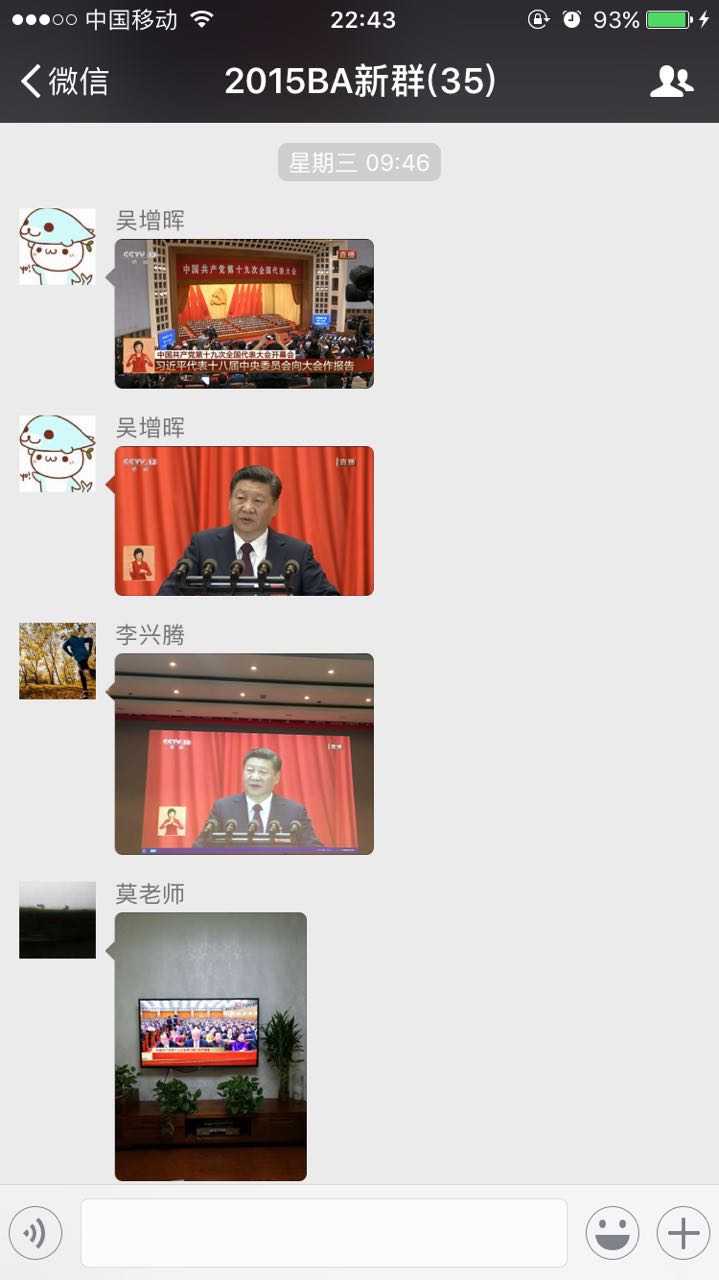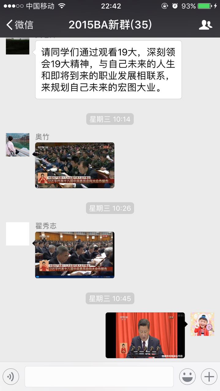 十九大开幕会一结束,3万多字的工作报告引起学生党员的热议,习近平新时代中国特色社会主义思想、九个方面的理论分析和政策指导等内容也在支部党员中产生了强烈共鸣。作为毕业班的党支部,大家正在全国各地寻找工作机会,但依然阻挡不了大家学习交流十九大精神的热情。考虑到时间和空间的限制,该支部最终采取自主学习、线上交流的创新形式,学习宣传贯彻党的十九大精神。
