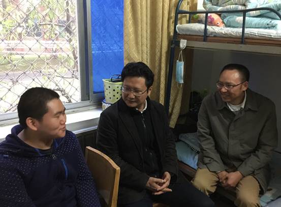10月25日下午,校党委副书记蒋一在学生工作部(处)、教务处、物理学院相关负责人和老师的陪同下,前往学生公寓321楼看望学生。