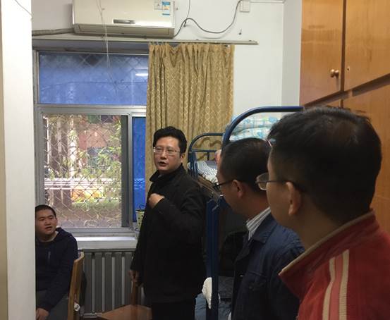 蒋一副书记在物业管理人员的陪同下,了解了学生公寓住宿相关情况,听取了相关老师对公寓管理方面的介绍和建议。随后他走进学生宿舍,细致查看房间内的各项设施,并与学生亲切交谈,详细了解同学们的生活状况、学习状况和未来的设想,征询同学们对学校生活和学习等方面条件的意见和建议。蒋一副书记向同学们转达了学校党委对同学们的关怀和期望,希望同学们保持良好的住宿环境和生活习惯,积极上进、不畏困难、踏实求学、勇于创新,承担起家庭、社会、国家的责任,争做“六有”大学生。