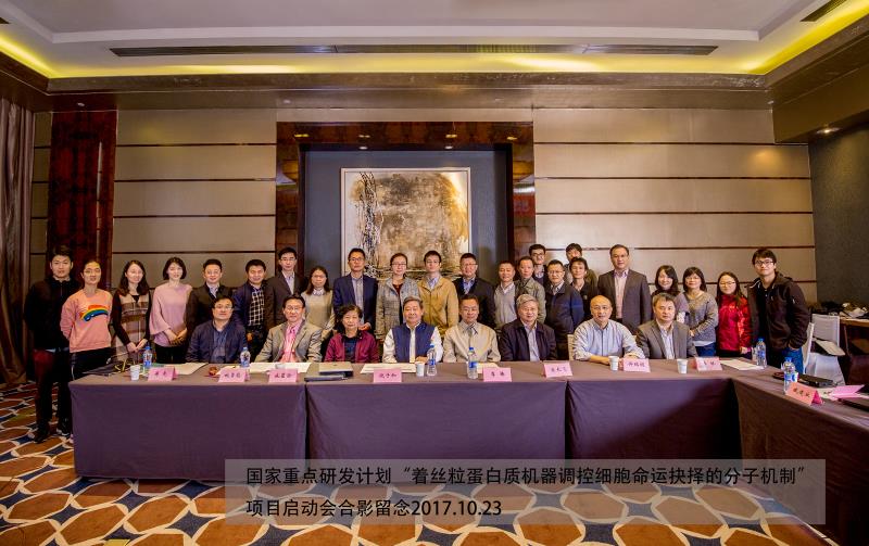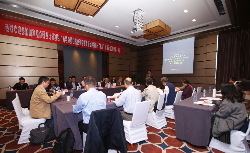 10月23日,我校生命科学学院姚雪彪教授牵头主持的2017年度国家重点研发计划蛋白质机器与生命过程调控重点专项 “着丝粒蛋白质机器调控细胞命运抉择的分子机制”项目启动会在合肥召开。清华大学饶子和院士、中国科学技术大学施蕴渝院士、中国科学院生物物理研究所许瑞明研究员以及教育部科技司李楠副司长等专家应邀出席会议。中国科学技术大学朱长飞副校长、科技部高技术研究发展中心江海燕和我校科研部的相关同志出席了启动会。项目四个参与单位共计30余人出席了会议,专项咨询专家饶子和院士主持会议。