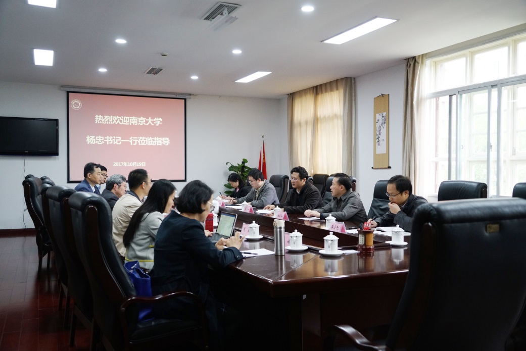10月19日上午,南京大学党委常务副书记杨忠、人力资源处处长王振林、人力资源处副处长纪勇等一行六人来我校调研交流。会议由我校党委副书记蒋一主持,人力资源部、党政办公室等部门参加了会议。
