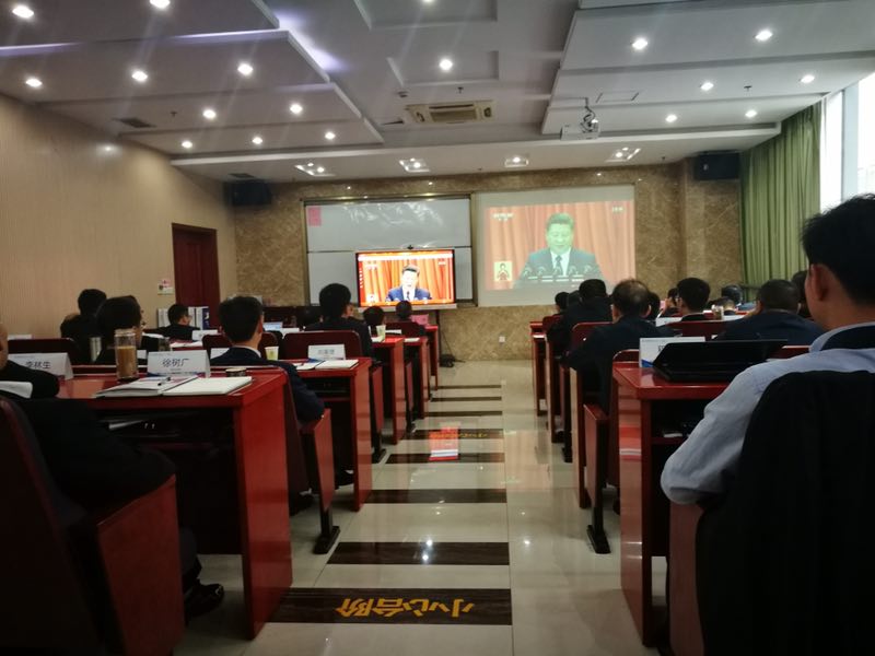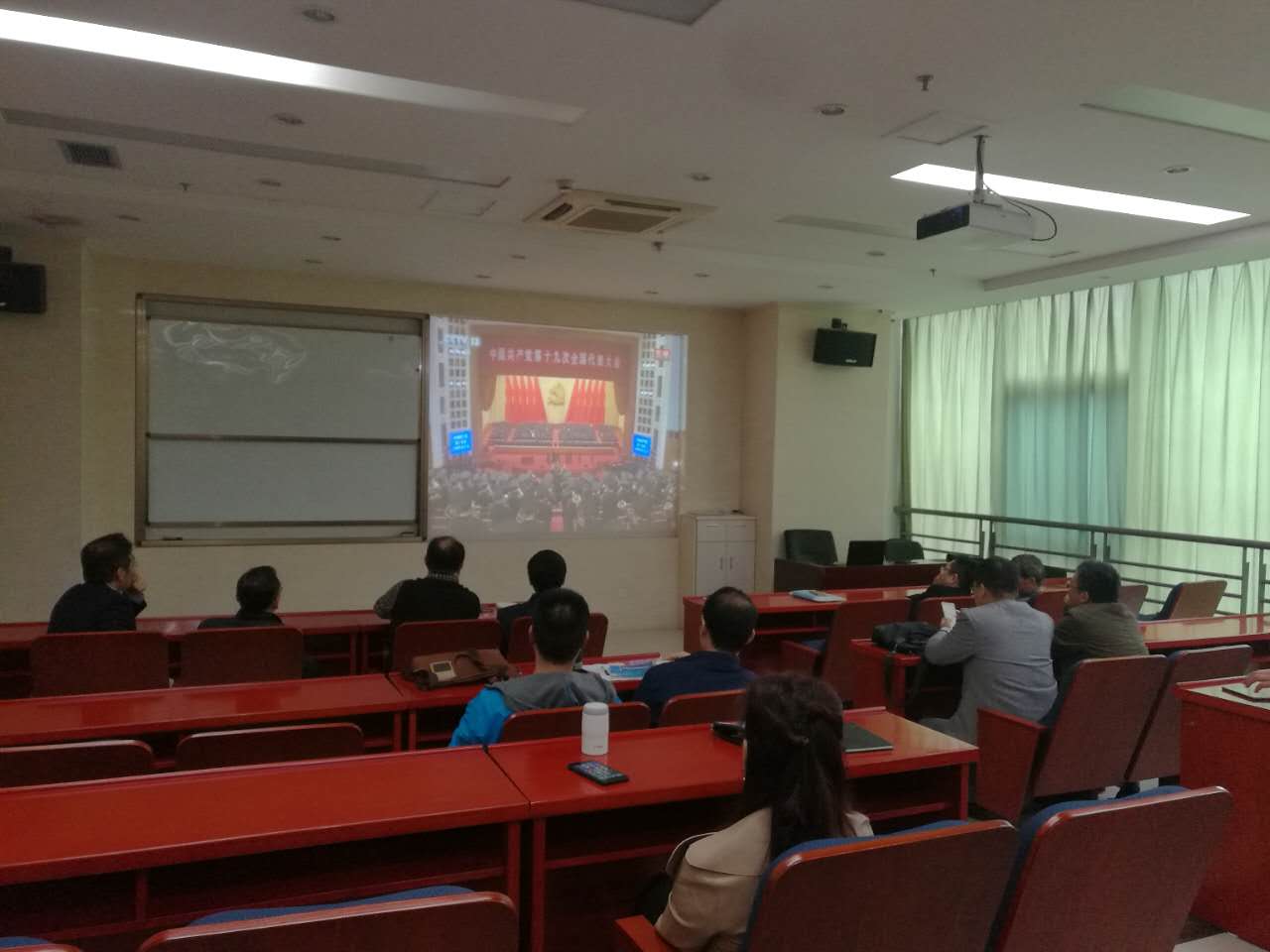 学院领导,各系、中心主任、副主任,党总支书记、教工党支部书记,学院骨干教师、民主党派成员等集中在管理科研楼EMBA第五教室收看了开幕会盛况。