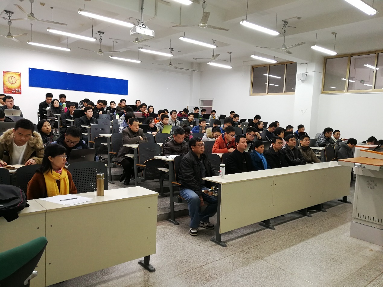 褚家如介绍了十九大主要议程、主题和主要成果。他从“深入领会十九大精神的丰富内涵”、“高校推进全面从严治党”、“以十九大精神为引领,推动建设一流大学”三个方面,结合学校的发展、自身的经历、从事的科研与人才管理工作,对十九大精神进行了详实、生动的宣讲。