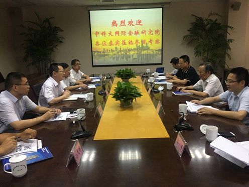 周先意副校长一行首先赴滨湖新区管委会参加座谈会,听取中国科大国际金融研究院施工进展情况汇报。包河区委副书记、滨湖新区建设管委会副主任李宏卓、刘斌,综合办主任陈升,建设处副处长尹文亮,滨湖新区建设投资有限公司规划部副部长吴琼等相关职能部门负责人参加座谈汇报。滨湖新区将中国科大国际金融研究院建设项目作为区重点项目专项督办,项目建设工作自2017年6月正式启动以来进展顺利,目前一号楼地下室结构已完成,达到了“正负零”的要求;二号楼地下室主体结构施工已完成60%。预计2017年年底前,一、二、三号楼可以封顶,四至八号楼达到“正负零”要求;2018年“五一”左右,八幢楼可全部封顶;单体工程预计在2018年底前结束,室外工程包括装修工作预计2019年5月完工。