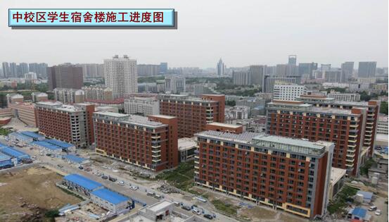 中校区学生宿舍楼项目拟建学生宿舍6栋,总建筑面积98894平方米,项目总投资概算约3.75亿元,于2015年6月1日开工建设,2016年5月完成主体验收,目前正在进行安装和内外装饰施工。根据2017年6月22日包校长考察调研中校区指示精神,中校区学生宿舍楼及学生生活服务中心、动力保障站房工程,计划于2018年春季学期交付投入使用。
