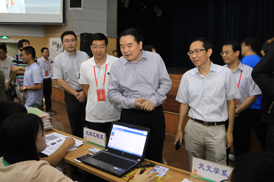 校领导包信和、黄素芳、杨金龙来到研究生迎新现场,检查指导研究生迎新工作,了解各院、系新生报到情况,看望前来报到的新生和家长,与参加迎新工作的老师和志愿者们进行沟通,对他们的辛勤工作表示感谢。
