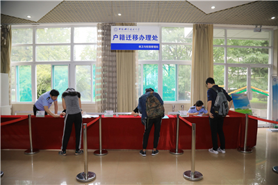 研究生新生报到集中在东区大礼堂进行,总协调处、党组织关系、缴费处、奖贷金咨询、各院系报到处、户籍迁移办理处等地点秩序井然,总协调处的屏幕上实时动态显示着新生注册的统计情况。