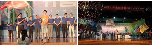 7月18日上午8时,营员们在志愿者的带领下,步入东区大礼堂,参加了全校夏令营开营仪式。营员代表从校党委书记许武教授的手中庄严地接过了第十届生命科学夏令营的营旗,象征着十年的夏令营又开始了一个新的征程。