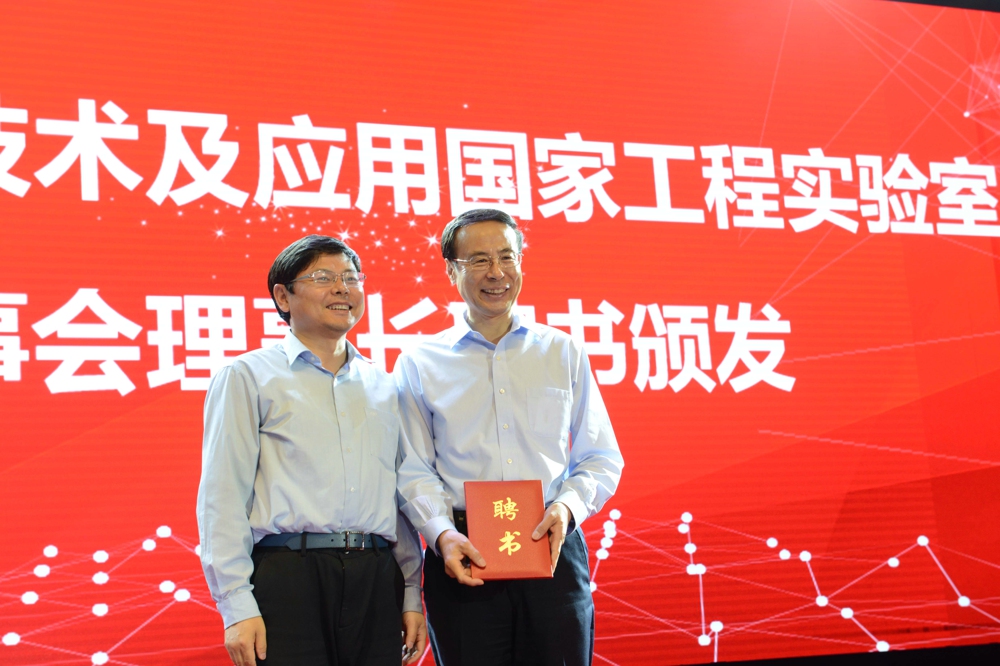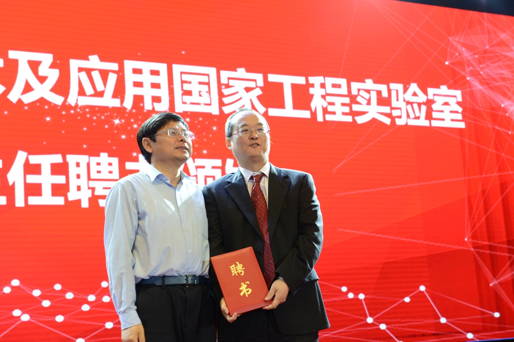 中国科大信息科学技术学院执行院长、类脑智能技术及应用国家工程实验室主任吴枫在会上作了实验室工作报告,介绍了实验室成立背景、承担的任务和研究计划以及未来发展愿景等。会上,宋国权、万立骏、陈文开、安徽省发改委副主任吴劲松一同为实验室揭牌;吴劲松分别向万立骏、吴枫颁发实验室理事会理事长、实验室主任聘书。