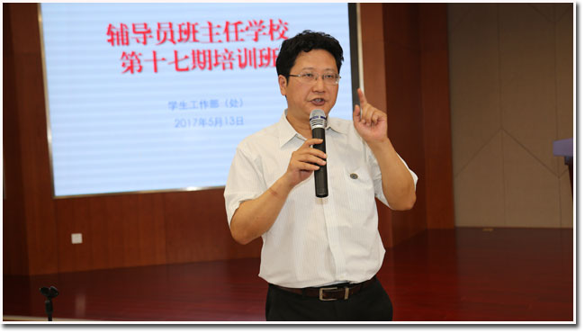 学生工作部(处)长董雨以“立德树人,遵循规律,托起学生腾飞的翅膀”为题,作了专题讲解。他从围绕、关照、服务学生三个方面,对全校学生工作体系、学生工作指导思想和学生工作部(处)职能等进行了阐释,以便辅导员班主任全方位、多角度地认识和了解学生教育管理工作,培养学生具有较高的思想水平、政治觉悟、道德品质和文化素养。