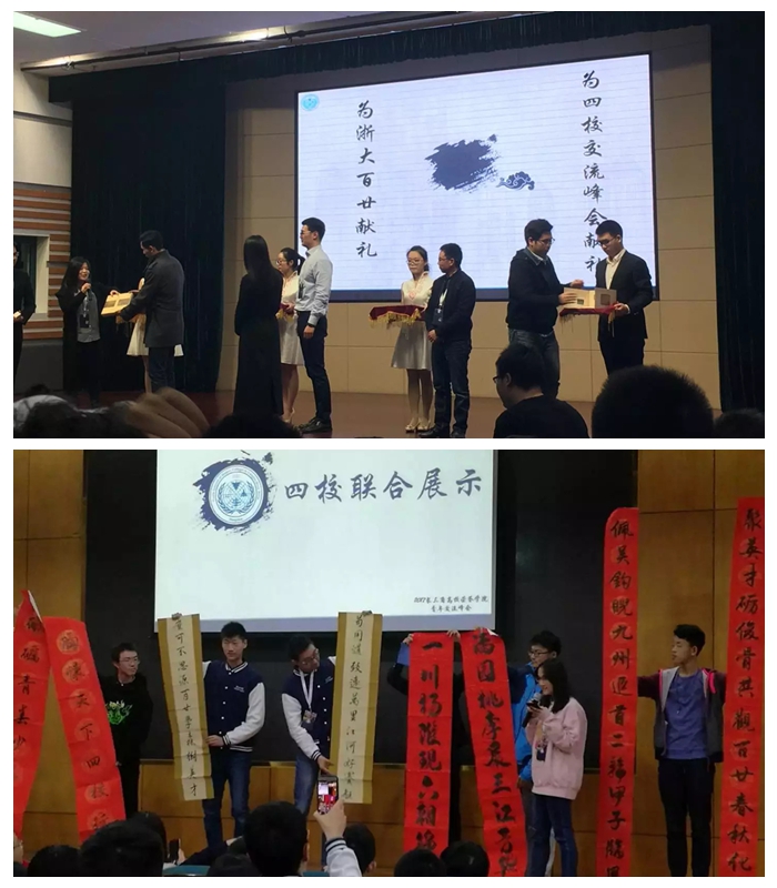 2017年适逢浙江大学成立120周年。峰会开幕式上,匡亚明学院赵玉倩老师、致远学院陈申远老师、中国科学技术大学少年班学院唐宁老师分别代表各自学院,祝贺浙江大学120周年生日快乐。竺可桢学院党委副书记陈君芳老师代表竺可桢学院对本次青年交流峰会开幕表示祝贺,对远道而来的客人表示欢迎。随后,四个学院学生会主席分别上台做主题报告,介绍了本院学生会的基本架构、运营机制、特色活动等。