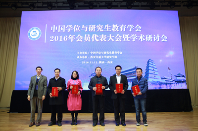 11月11日,中国学位与研究生教育学会2016年会员代表大会暨学术研讨会在西安召开。国务院学位委员会办公室副主任、教育部学位管理与研究生教育司司长李军,中国学位与研究生教育学会会长赵沁平院士,中国学位与研究生教育学会副会长张淑林教授等参加大会。本次会议主题为“改革创新特色发展 建设研究生教育强国”,吸引了来自全国研究生教育战线的近800名代表参会。会上,我校喜获多项表彰和荣誉。