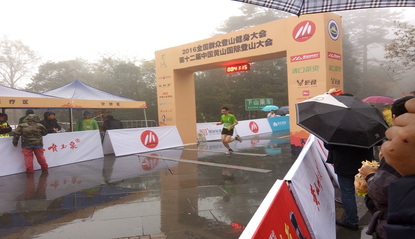 越野赛十公里组起点为黄山南大门,终点为云谷寺,全程海拔上升400米左右。比赛当天下着小雨,山中有大雾,能见度不到30米,曲折环绕的赛道更是看不到周围的参赛选手,只有不间断的上坡等着去翻越。