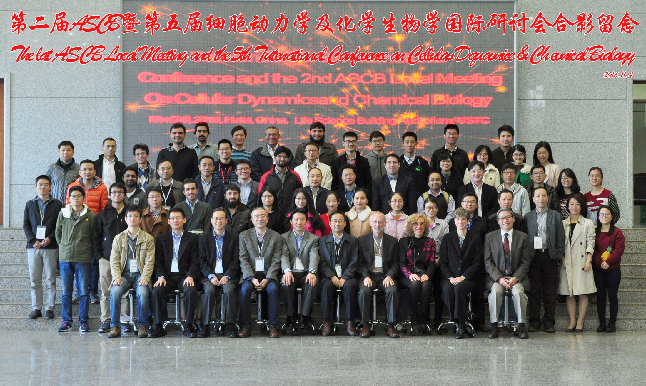 第五届细胞动力学和化学生物学国际研讨会暨第二届美国细胞生物学会中国会议于11月3日至7日在中国科学技术大学生命科学学院召开。来自美国霍华德休斯医学研究院、美国洛克菲勒大学、美国加州大学旧金山分校、美国西北大学、美国西南医学中心、美国弗吉尼亚大学、香港科技大学、美国加州大学圣迭戈分校、台湾中研院、中科院生化与细胞所、中科院生物物理所、中科院遗传与发育研究所、中科院深圳先研院、北京大学、复旦大学、上海交通大学、北京师范大学、中国科学技术大学、中科院合肥物质研究所、合肥微尺度物质科学国家实验室、中科院合肥物质科学交叉中心、安徽细胞动力学及化学生物学省级实验室、生命的化学基础协同创新中心、中国科学院分子细胞科学卓越中心等国内外一百多位学者参加了会议。