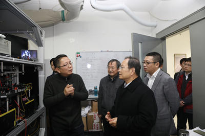 11月10日下午,中国保监会调研组一行访问我校。中央纪委驻中国保监会纪检组组长陈新权、安徽保监局局长王柱、安徽保监局副局长璩斌等在我校副校长周先意、科研部副部长朱霁平、中科院量子信息与量子科技前沿卓越创新中心(以下简称“卓越中心”)刘乃乐教授等陪同下,实地调研了卓越中心,并在东区理化大楼一楼科技展厅听取卓越中心工作汇报、进行座谈交流。中国保监会相关工作人员、卓越中心部分科研人员参加了座谈会。