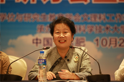 张淑林副会长代表中国学位与研究生教育学会向与会代表表示热烈的欢迎。她向各位代表通报了学会近年开展的“研究课题立项”“优博论文评选”“教育成果奖评选”等部分品牌学术活动概况和文理科工作委员会的工作开展情况,认为“双一流”和学科评估都是研究生教育工作的“重头戏”,在此时期,研究生教育如何定位、如何发展至关重要,希望各位代表在会上深入研讨,不吝赐教。