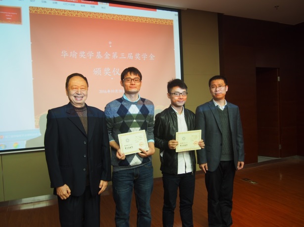 语音及语言信息处理国家工程实验室副主任戴礼荣教授首先宣读了“关于授予余泽浩等10位同学第三届华瑜基金奖学金的决定”文件。随后,王仁华教授与科大讯飞研究院院长胡国平共同为获奖学生颁发奖学金证书。