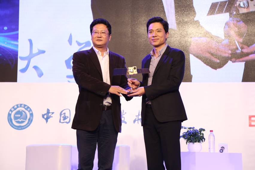 校党委副书记蒋一致辞,对李彦宏的到来表示热烈欢迎,并向他赠送了中国科大主导研制的墨子号量子卫星模型。李彦宏高度赞扬了中国科大在创新人才培养方面取得的突出成就,并特别向同学们介绍了许多科大校友为百度发展做出的贡献。