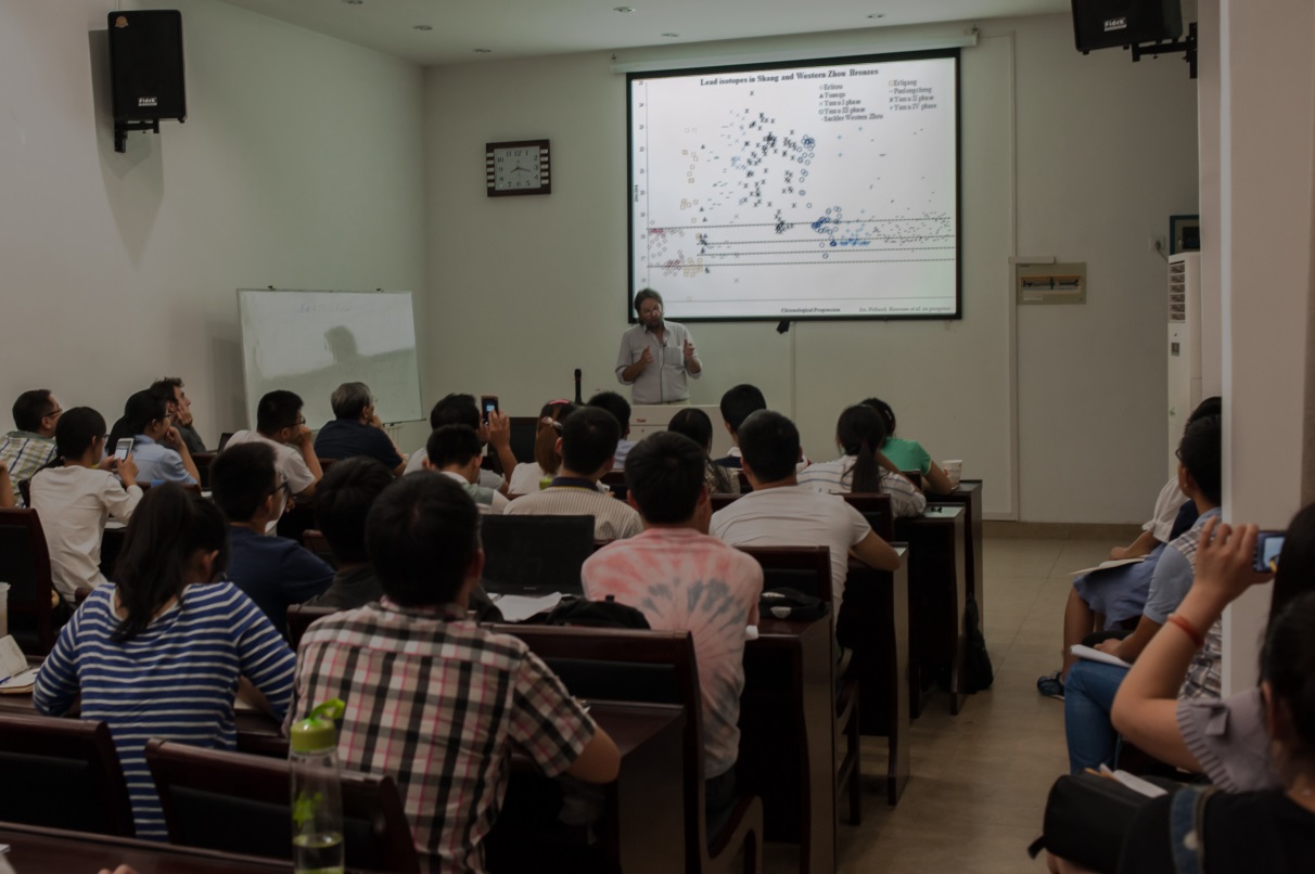 Pollard教授的精彩演讲引起了师生们的浓厚兴趣,大家就不同铅源的混合线,锡、铅的加入对微量元素的影响,以及如何解释微量元素分析和铅同位素分析结论可能不同等问题展开了热烈讨论。演讲会场座无虚席,没有挤进来的同学坚持站立在窗外听完报告。