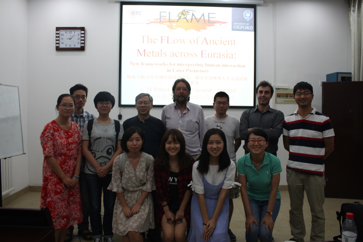 报告中,Pollard教授介绍了由牛津团队主导的欧盟研究委员会资助项目——跨越欧亚大陆的古代金属流动(FLAME,我校科技考古实验室是该项目伙伴小组成员)的基本情况和最新进展。他阐明该项目的研究目的,在于以不同类型的铜料及其合金的分布规律为线索,来探究史前时期欧亚大陆不同地域社会群体之间的关系,分析包括来自欧亚大陆大部分地区的合金成分、微量元素以及铅同位素分析数据,是一种基于“大数据”的研究方法。