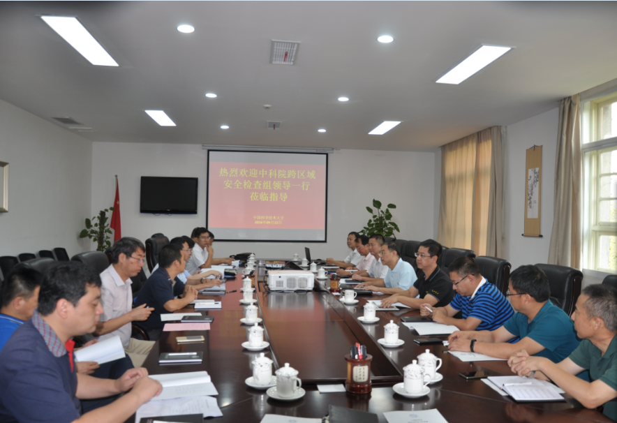 9月22日上午,中科院跨区域安全工作检查组一行到我校检查安全工作。检查组首先在218楼三楼会议室听取我校安全工作汇报,会议由校长助理王晓平主持。中科院北京分院分党组副书记、副院长王树志、中科院办公厅安全保卫处处长王仁伟等专家组成员,我校党政办公室主任刘天卓,保卫与校园管理处处长洪军、副处长张宪锋,国家同步辐射实验室、生命科学学院、火灾科学国家重点实验室代表等参加了会议。