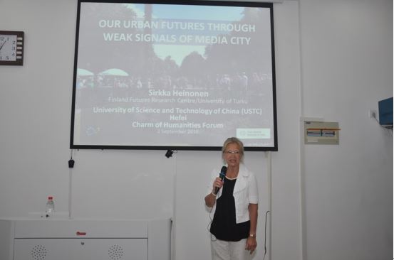 9月2日晚,芬兰图尔库大学Sirkka Heinonen教授做客我校“魅力人文-兴业论坛”,为我校师生带来了题为“Our Urban Futures Through Weak Signals Of Media City”(从媒介城市的弱信号看未来城市)的精彩讲座。人文学院科技传播与科技政策系主任周荣庭教授主持本次报告会。