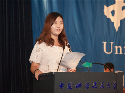 研究生新生代表杨钰潇同学分享了她到中国科大求学深造的喜悦,并代表新生表示,将充分发扬科大精神,博采众长、内外兼修,不驰于空想,不务于虚名,积极投身于科研事业,将来承担更大的社会责任。