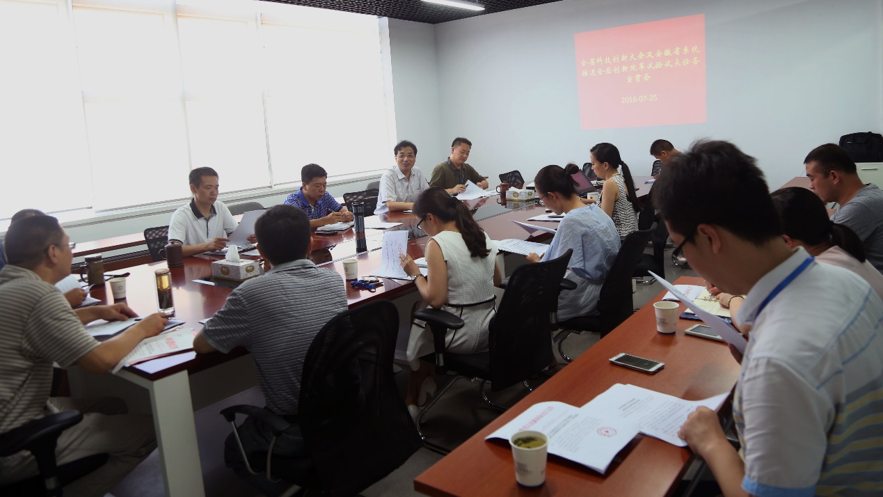 会上,院长助理陈林、技术开发部部长潘学文分别传达了安徽省、合肥市系统推进全面创新改革试验试点任务分工等文件精神。