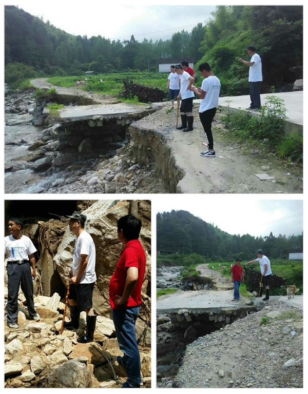 连日来,安徽省多地普降大暴雨、特大暴雨,灾情严重。地处大别山区的我校扶贫点金寨县燕子河镇龙马村汛情严峻,遭百年不遇的特大洪水冲击,道路桥梁损坏,村组道路几乎全部中断,160余间房屋遭洪水,大量农田受毁。学校派往该村担任扶贫工作队队长的宗诚刚,尽管在外出差却始终心系扶贫点群众的安危。7月7日上午,宗诚刚拖着带病的身体,冒着山体滑坡和泥石流的危险,组织社会企业,带上募捐来的一车赈灾物资(大不锈钢保温桶40个,方便面100箱,矿泉水70件,雨鞋52双,雨衣75套,反光马夹10件,蚊帐50顶等防汛、救灾物资)和1万元的救济金,前往龙马村。