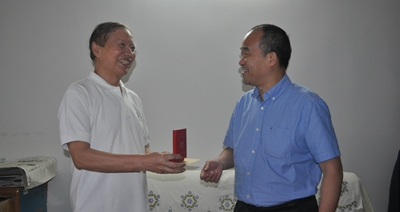 在何多慧院士、俞昌旋院士、郭光灿院士、蔡有智、卞祖和、王忠民等六位老党员家中,许武书记等校领导与老党员亲切交谈,关切地询问他们的身体状况和家庭、生活情况,并为他们颁发了“光荣在党五十年”纪念章。许武书记代表学校感谢老党员为科大建设与发展作出的重要贡献,希望老同志们继续发挥余热,一如既往地关心和支持学校发展,为推动我校各项事业的科学发展建言献策。