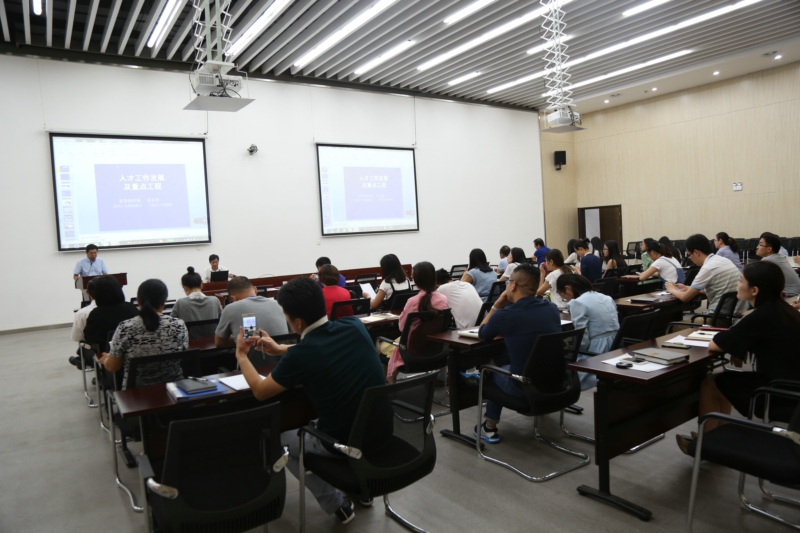 黄多能首先介绍了国家人才战略部署。他说,习近平总书记指出,办好中国的事情,关键在党,关键在人,关键在人才,综合国力竞争说到底是人才竞争。今年2月中央印发了《关于深化人才发展体制机制改革的意见》,着力破除机制体制障碍,向用人主体放权,为人才松绑,让人才创新力、创造力充分迸发,使各方面人才各得其所、尽展其长。黄多能还简要介绍了我国人才发展的四个阶段及每个阶段国家关于人才方面的发展战略和重点改革举措。交流会上,他总结了安徽重点人才工作(人才项目、人才计划及人才工程等),并和大家分享了安徽省人才工作的总体思路、市县急需的人才项目等。讲授中,黄多能结合近几年全国和省市人才工作的新发展,对先研院在高端人才引进、人事制度设计等方面开展的探索、取得的成绩给予了充分肯定。