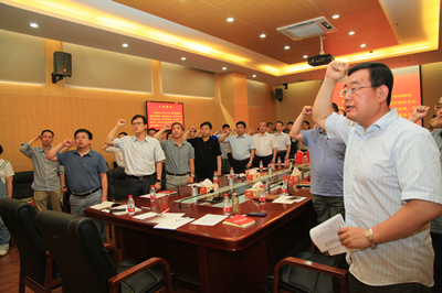 最后,全体党员面向党旗,重温入党誓词,庄严宣誓。