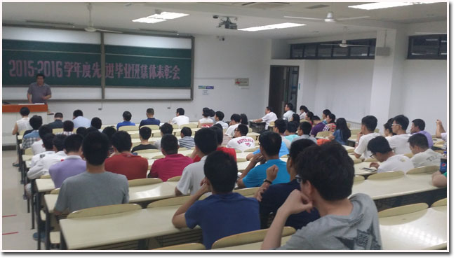 6月15日下午,学校在东区第五教学楼5103教室举办2015-2016学年度先进毕业班集体表彰会,39个学生班级获得表彰。校学生工作指导委员会办公室主任、学生工作部处长董雨,部分院系学生工作负责人,获得表彰班级的辅导员班主任、学生代表等一百余人参加了表彰会。表彰会由董雨主持。