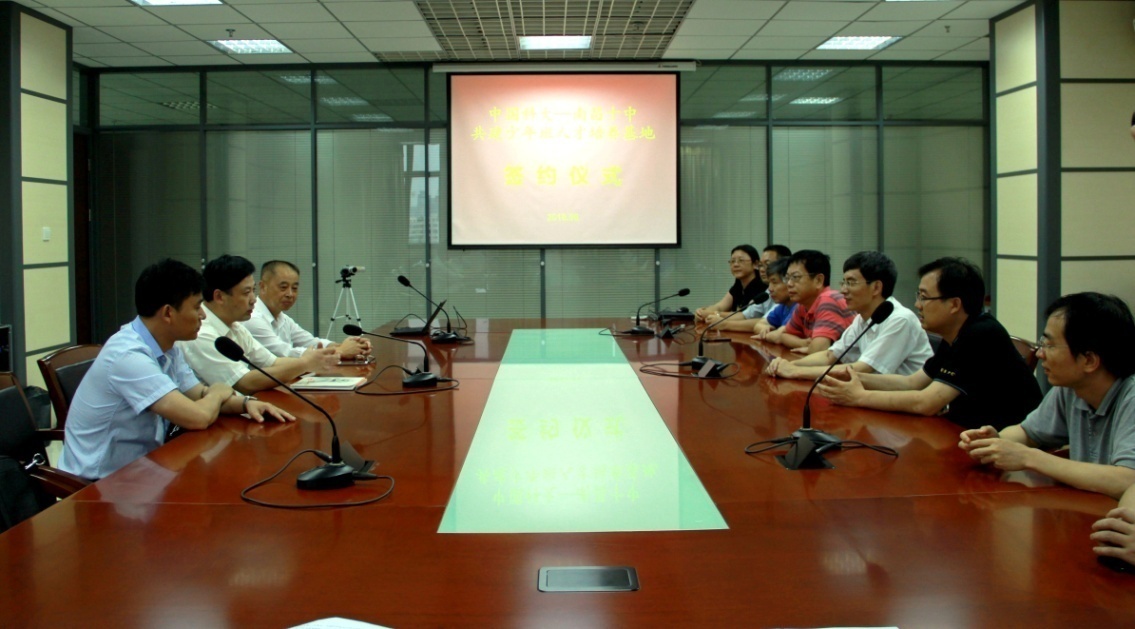 6月20日,中国科学技术大学和江西省南昌市第十中学共建“少年班人才培养基地”签约仪式在中国科大举行。中国科大副校长陈初升代表学校与南昌十中校长朱伟签订两校共建少年班人才培养基地协议书,并向南昌十中颁发“中国科学技术大学少年班人才培养基地”牌匾。