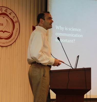 下午,Stone先生为我校师生做了题为“科技传播:一位Science期刊编辑的看法”(Science Communication: views of a Science editor)的报告。Stone先生首先介绍了Science期刊的历史和作为科学新闻记者的主要工作和成就。他说,科学新闻工作者的重要职责不仅要使大众了解科学,提高大众知识水平,还要使大众了解新科技与人们生活的关系,增加大家对科技的兴趣,促进科技发展。Stone先生还向师生们介绍了Science期刊论文接收过程,以及cover letter和摘要写作的注意事项。他说,cover letter和摘要是一篇文章很重要的部分,也是编辑读者最先接触到的部分,所以需要用完美的语言在简短的篇幅内向读者阐述清楚实验的背景、结果和意义。演讲最后,Stone先生欢迎爱好科技的师生加入科技新闻记者的行列。